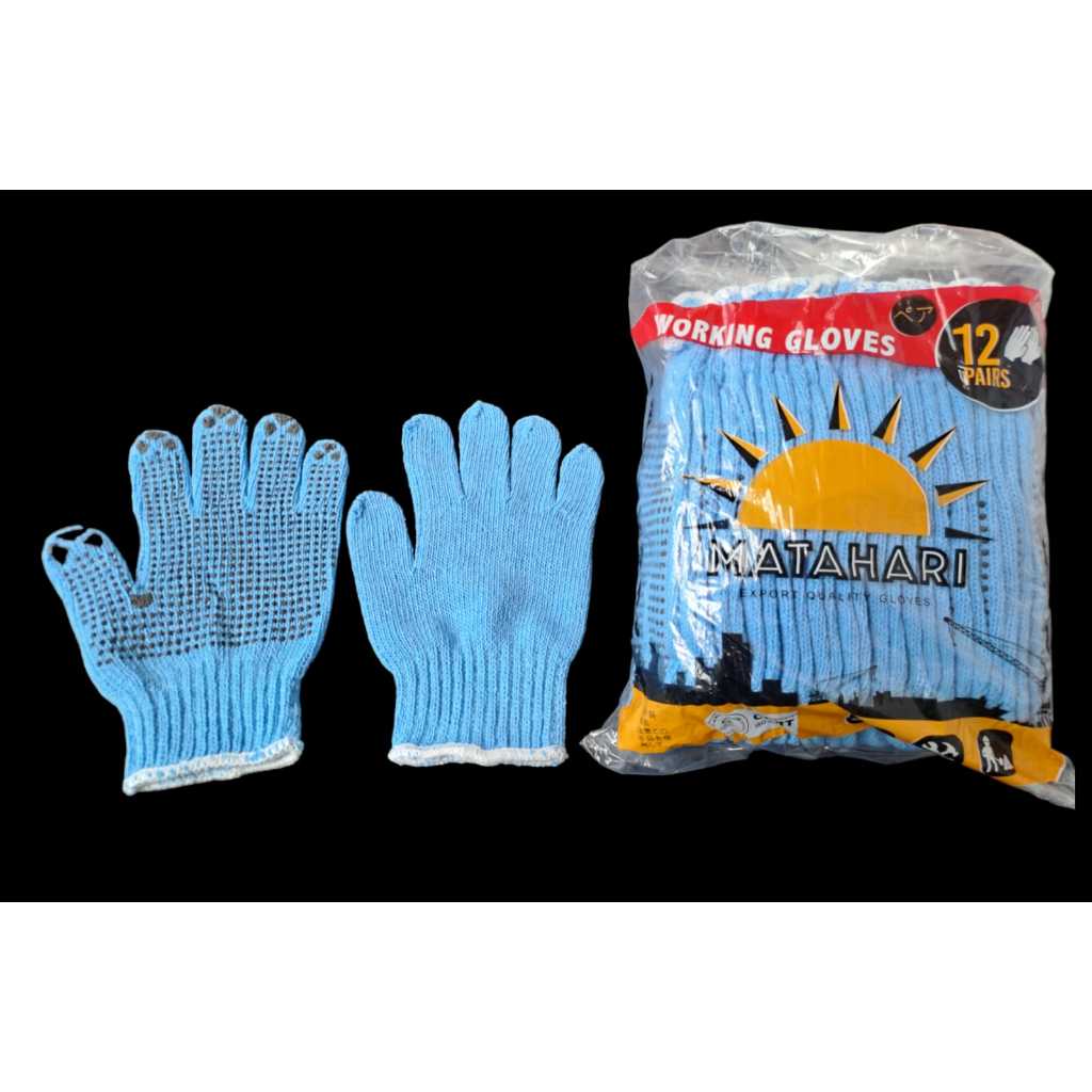 Sarung Tangan Benang BIRU MUDA Bintik Hitam 12 pasang