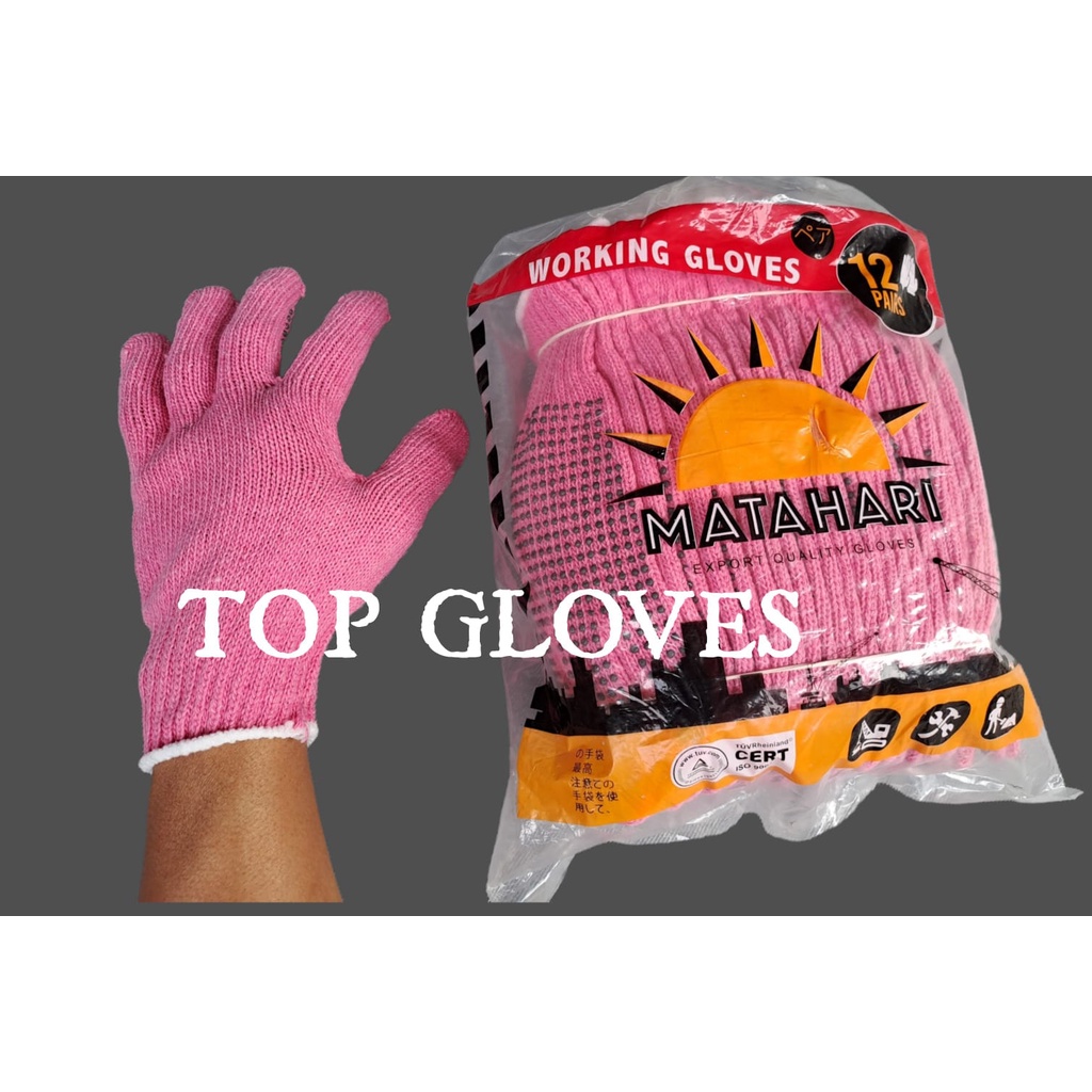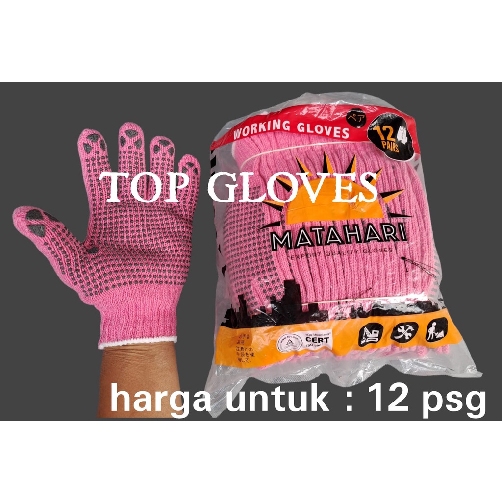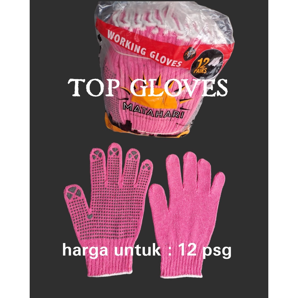 Sarung Tangan Benang PINK Bintik Hitam 12 pasang