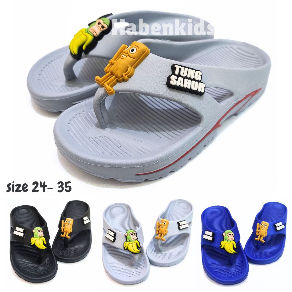 Sandal Jepit Anak Laki-Laki Cowok Karakter Anomali Tung Tung Sahur dan Chimpanzini Bananini