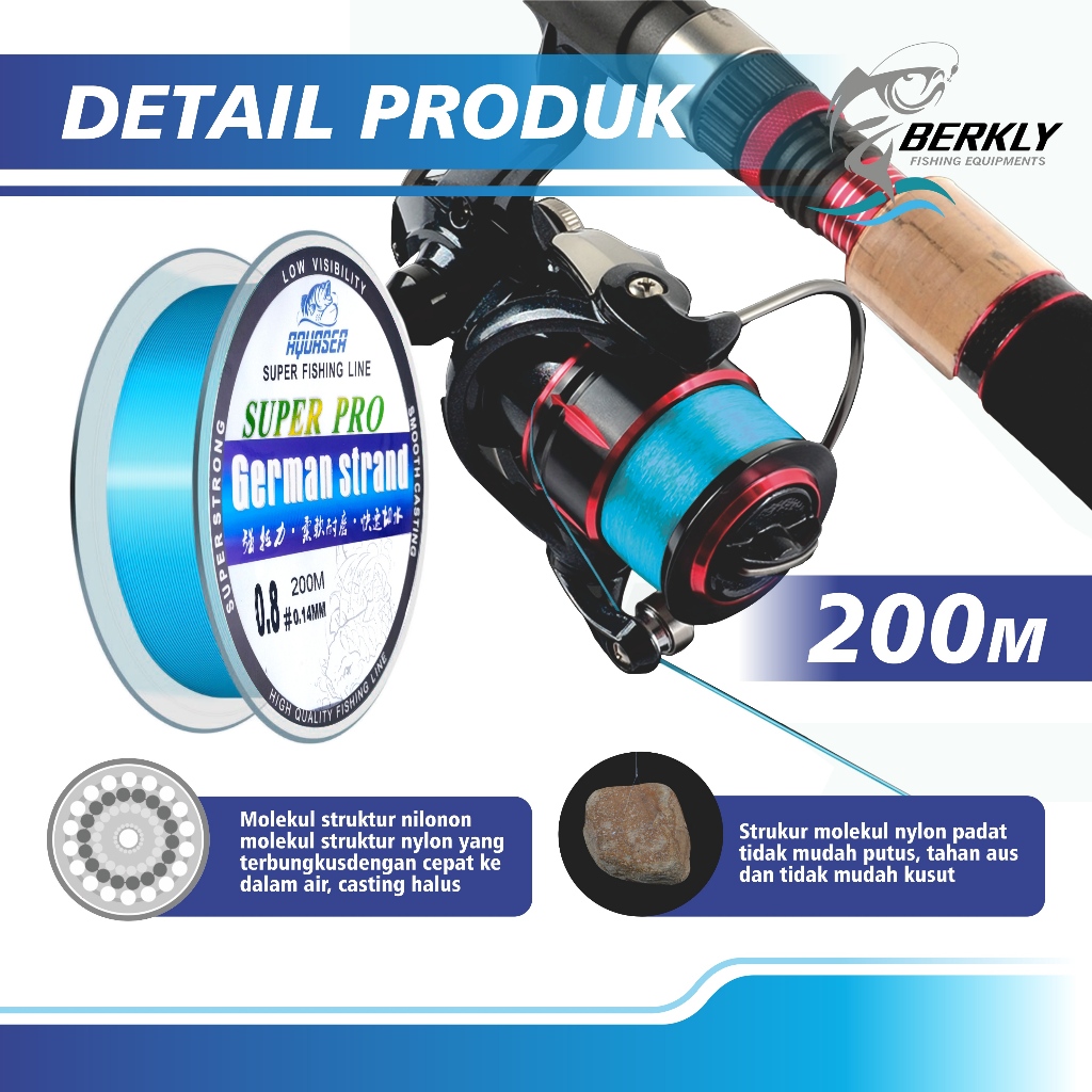 TERMURAH BERKLY - Tali Pancing Germany Fishing Line 200m Senar Pancing Bahan Nilon Tahan Lama Panjang