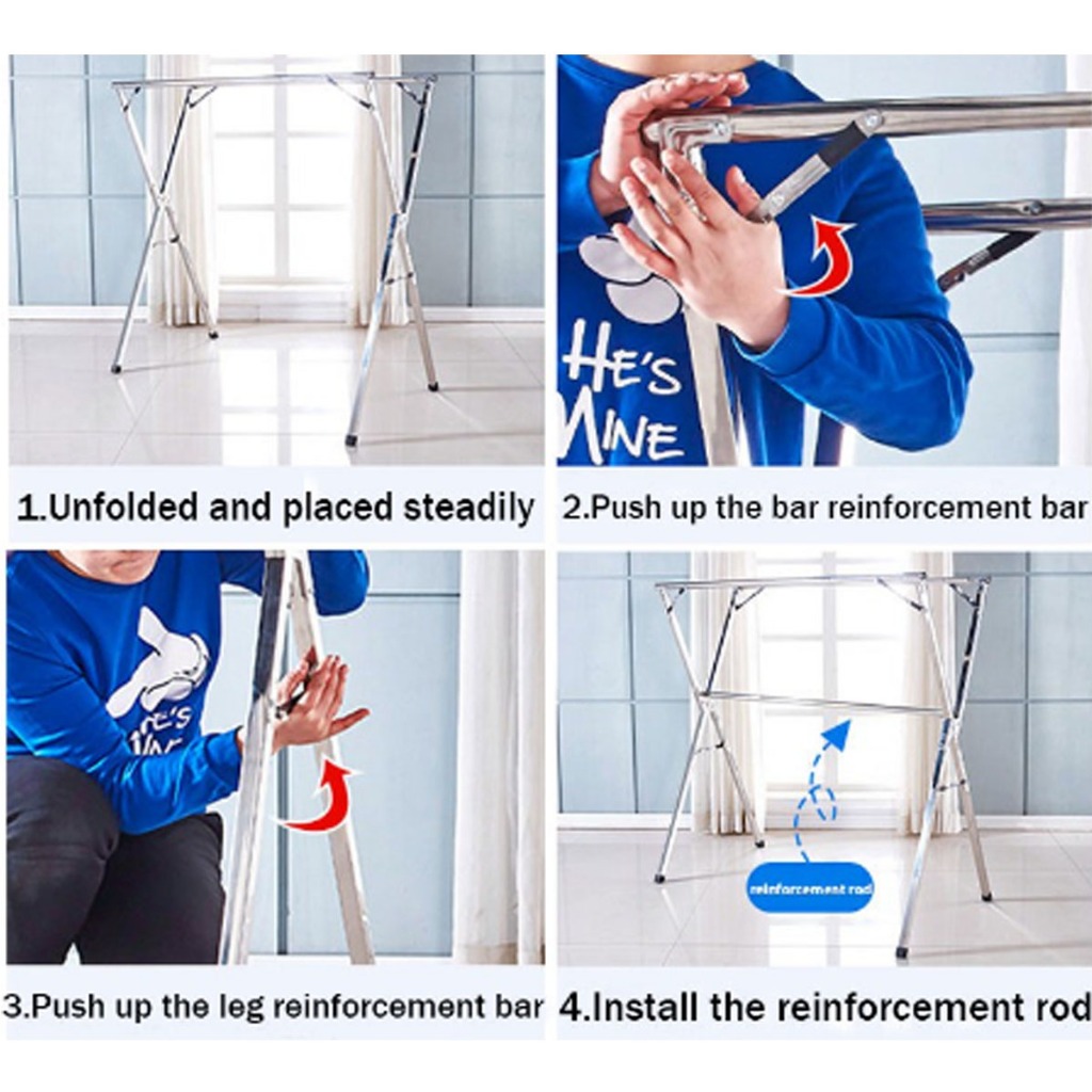 SUS-304 Jemuran baju stainless steel/Jemuran Pakaian/Jemuran Baju Lipat Stainless Steel Portable/Rak Jemur Pakaian Anti Karat Kuat