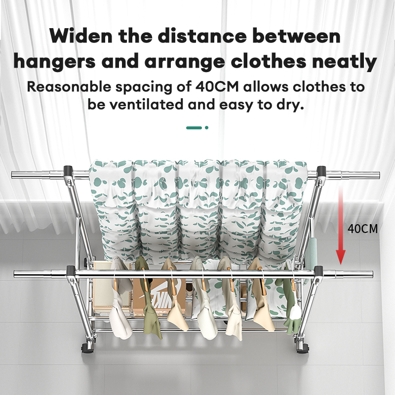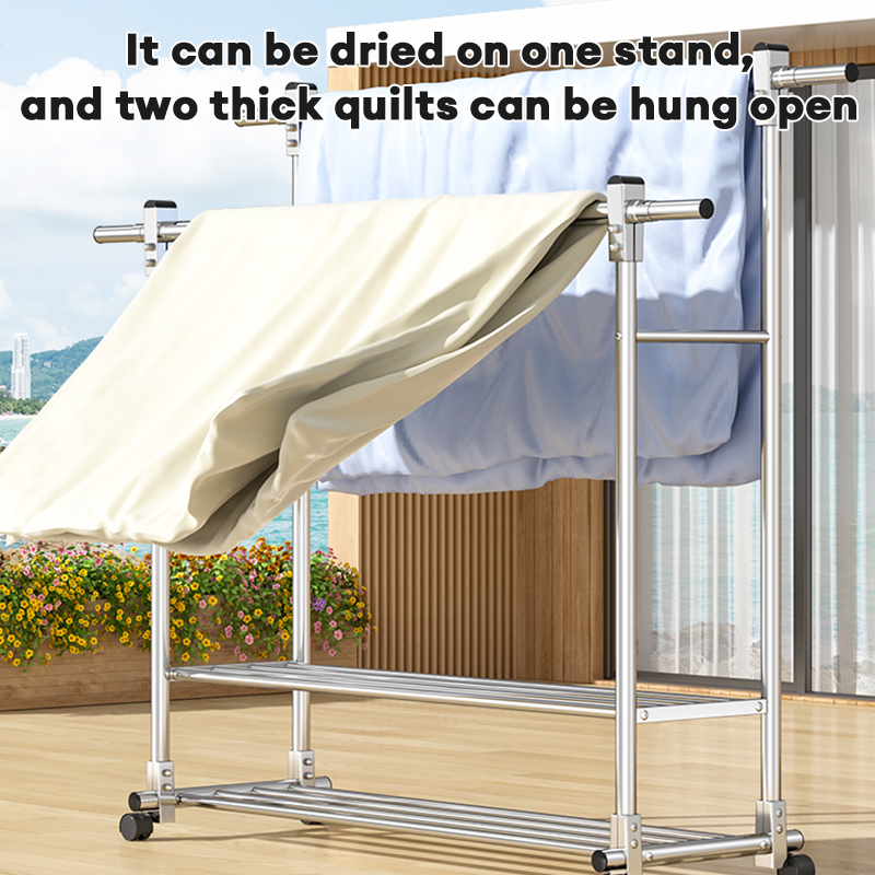 Rak Gantungan Baju Berdiri Stainless Steel Tebal Jemuran Baju Stainless Jemuran Baju Dobel Pool Roda