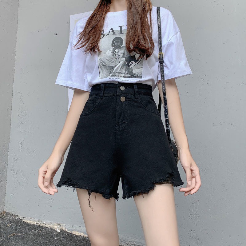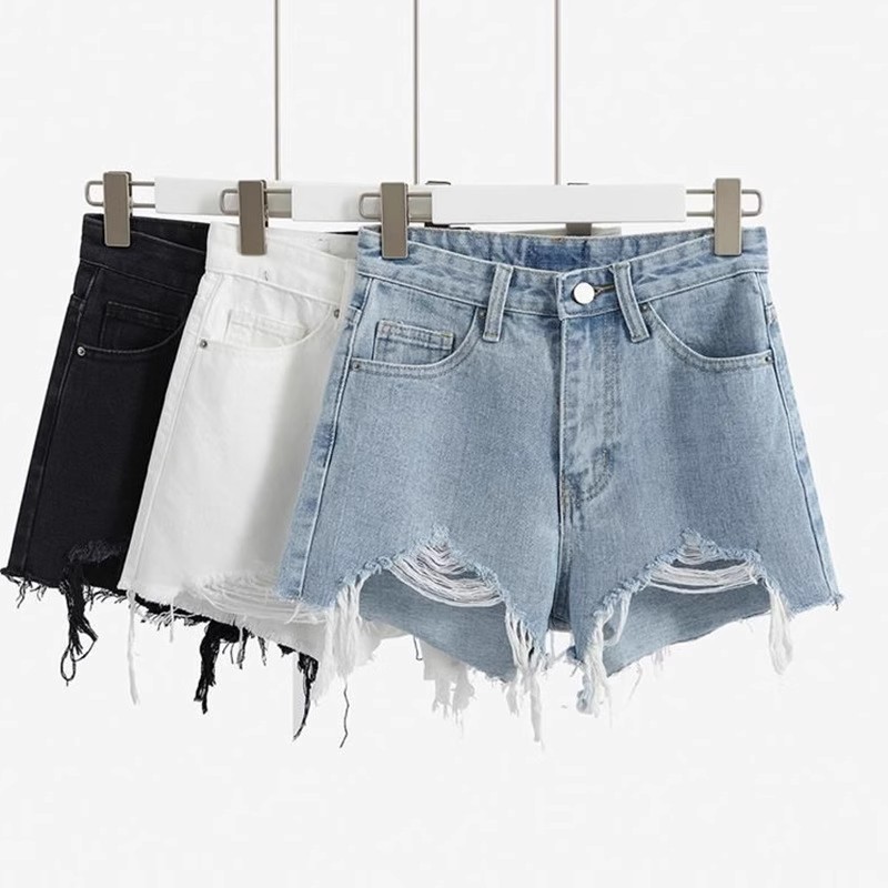 Celana Jeans Pendek Wanita Hot Pants Jeans korean style high waist Ripped sobek hotpants denim dewasa Robek 5XL bigsize