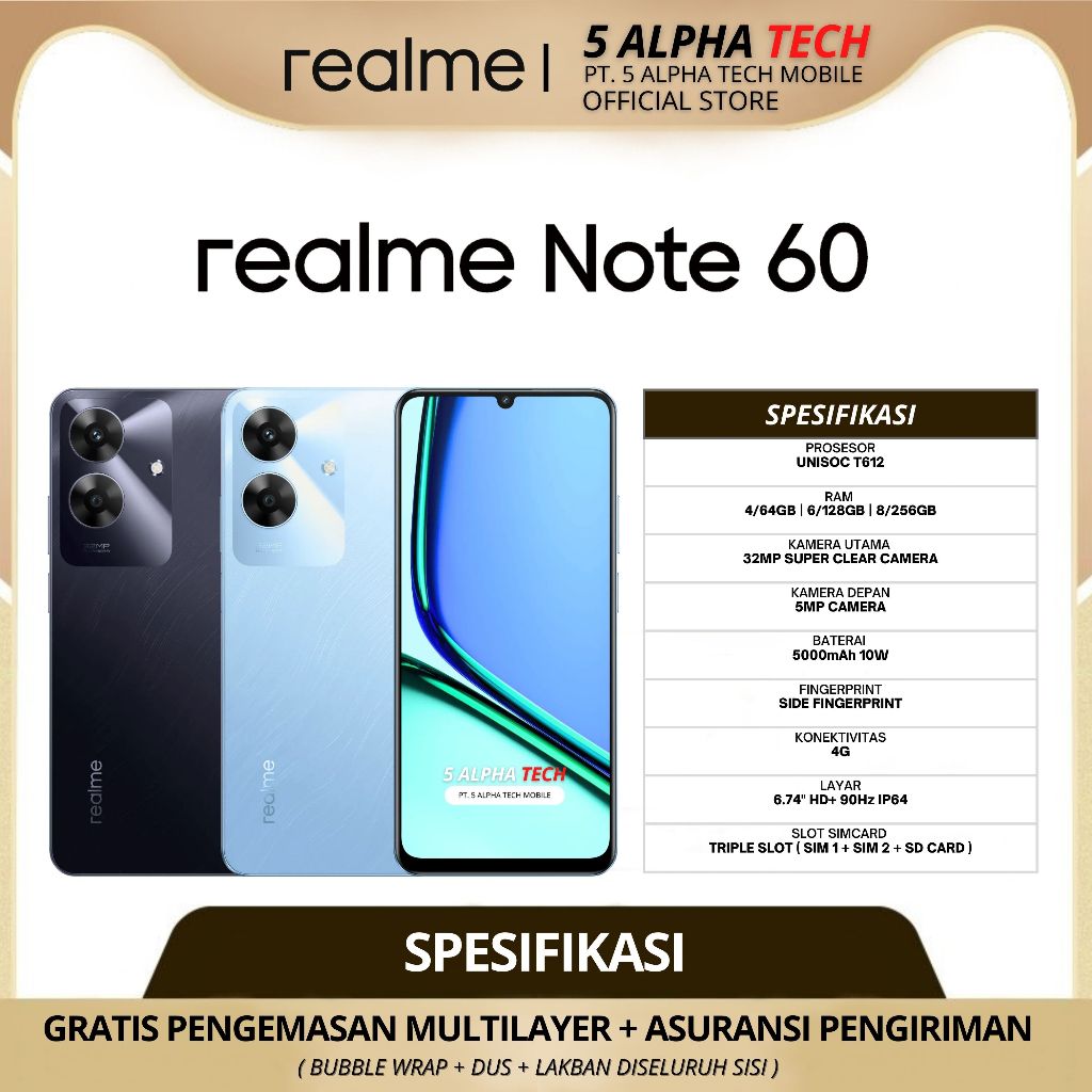 REALME Note 60 8/256GB ( +8GB Extended Ram ) Garansi Resmi Realme