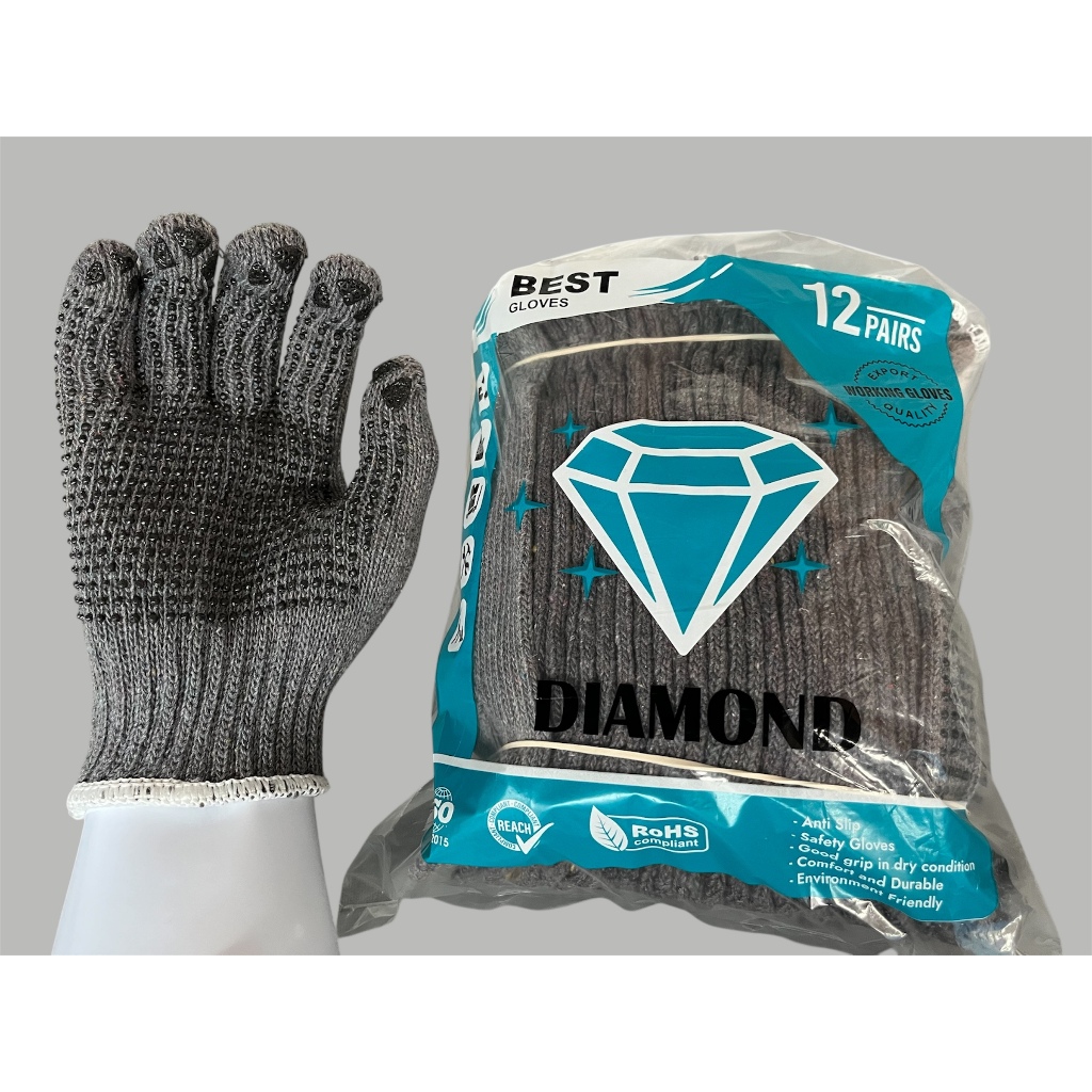 Sarung Tangan Benang 4 Abu-Abu Bintik HITAM 12 pasang