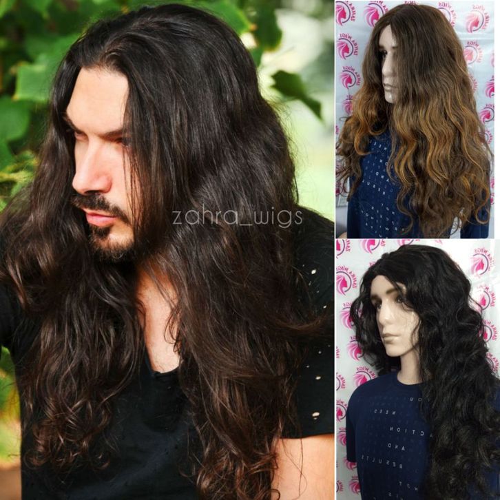 WIG PRIA RAMBUT BADEL PANJANG KERITING BEROMBAK GAYA PRIA EROPA GAGAH