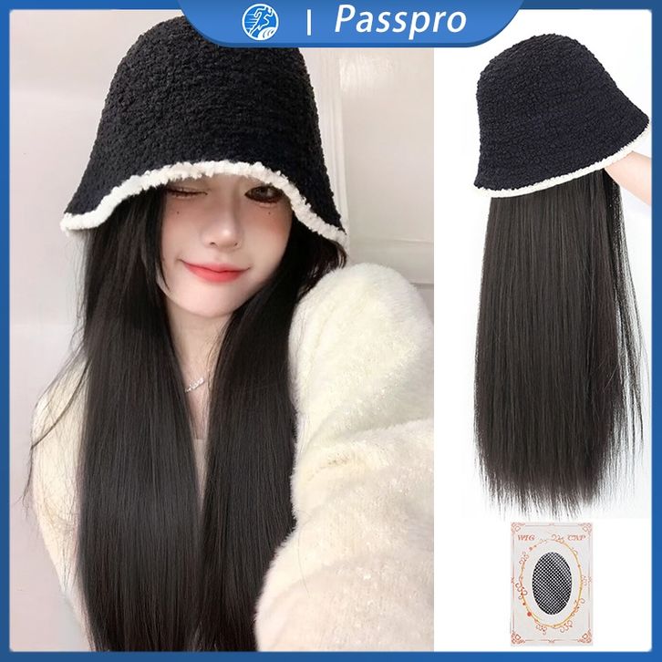 Topi Ada Rambut Palsu Topi Wig Wanita Hair Extension Rambut Panjang