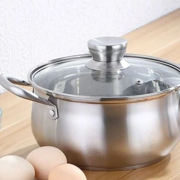 Stainless Panci Soup Labu isi 3 Pcs Tutup Kaca Pumpkin Panci Rebus Set 3 Pcs Ukuran