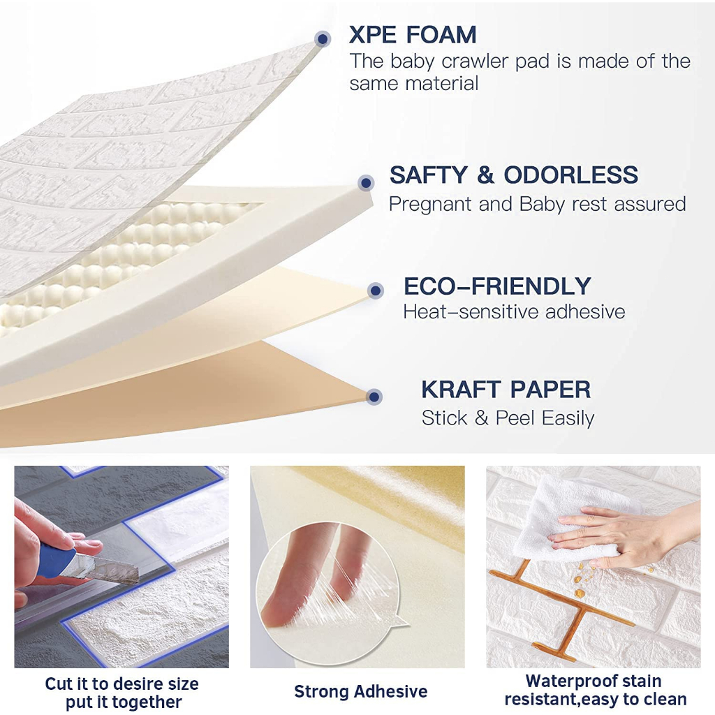 Termurah Wallpaper Dingding Bata 35×30cm 3D Wall Sticker Foam Self Adhesive super dikit