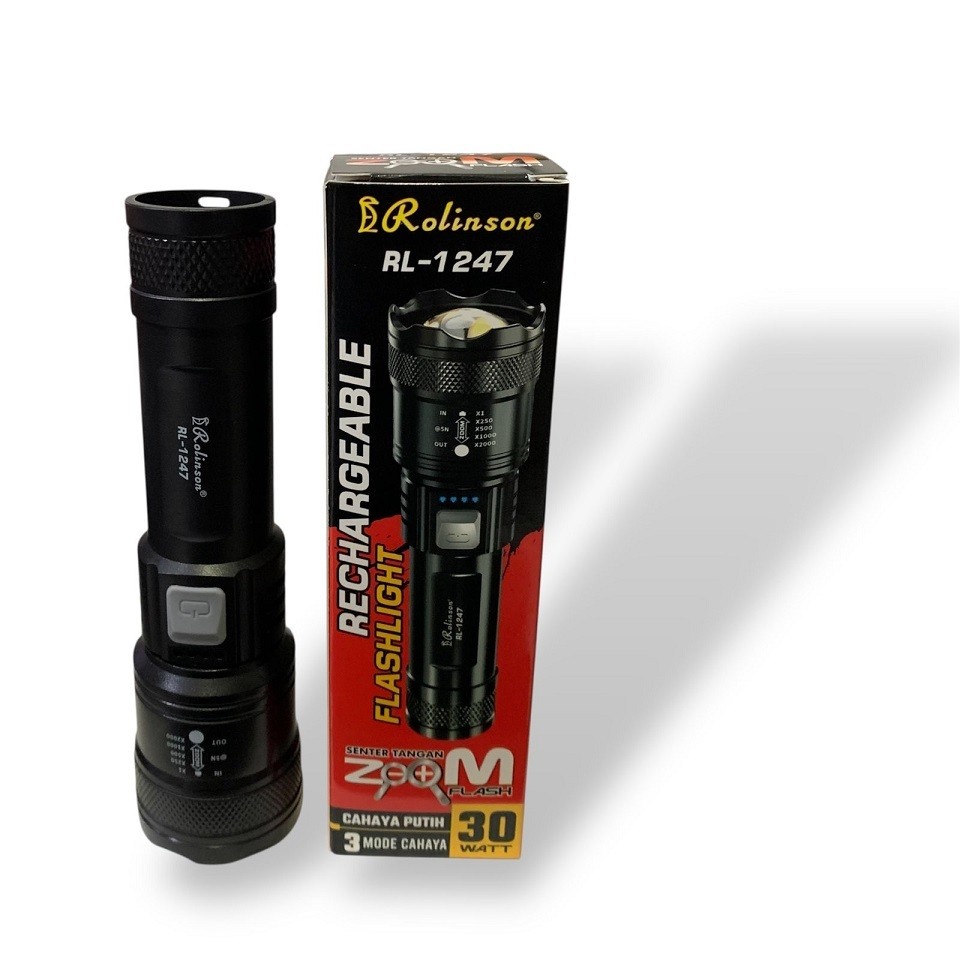 Senter Tangan Zoom Flashlight 30W Rechargeable Rolinson RL-1247 Termurah
