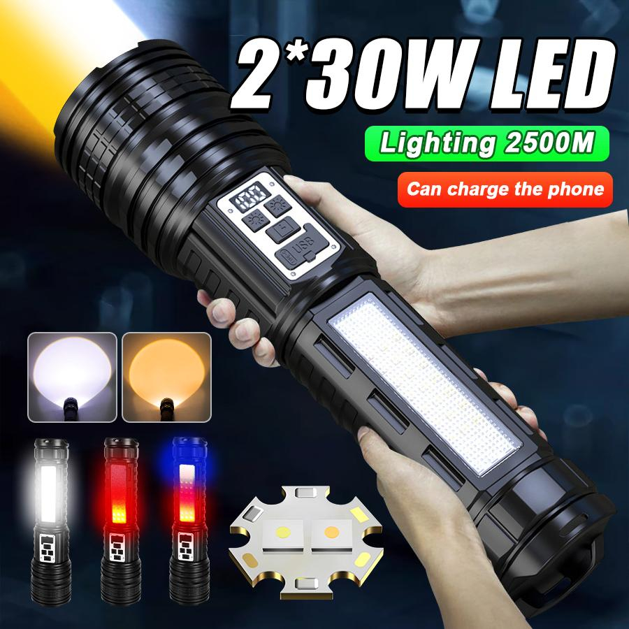 Senter LED luar ruangan super terang, senter laser LED jarak jauh 2 km, lampu putih asli, mode ganda, senter patroli tah