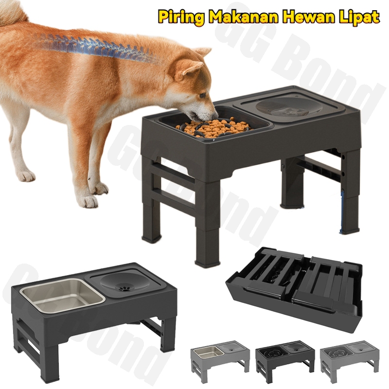 2 IN 1 Adjustable Dog and Cat Bowl With Stand Anti-Spill Slow Feeder Foldable Stainless Steel Pet Food Dish for Dogs and