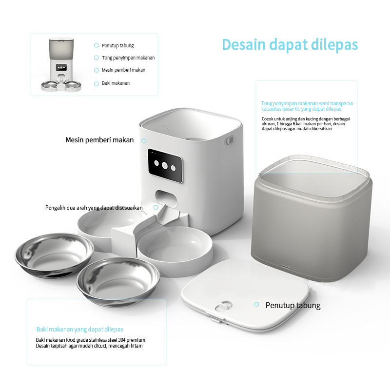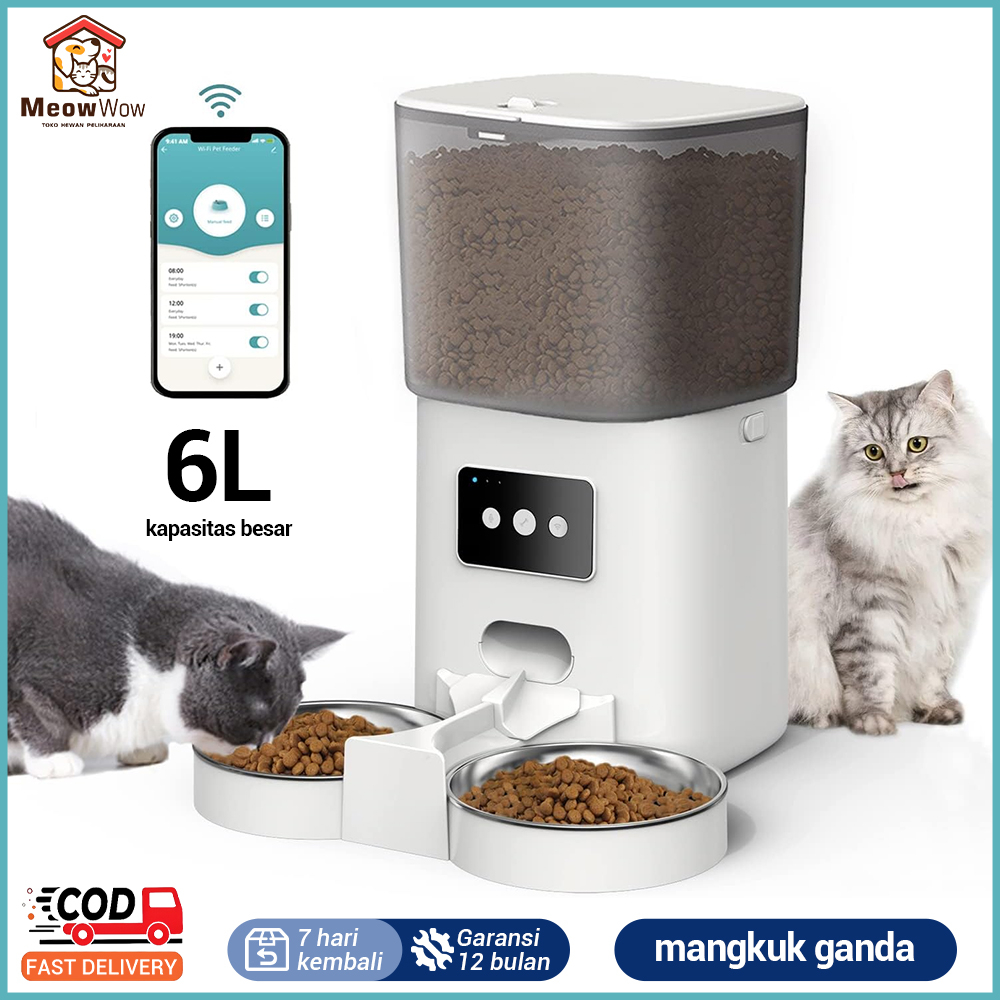 MEOWWOW wifi Automatic Pet Feeder / Dispenser Makanan Otomatis Anjing Kucing / Tempat Makan Hewan Ortomatis 6 liter