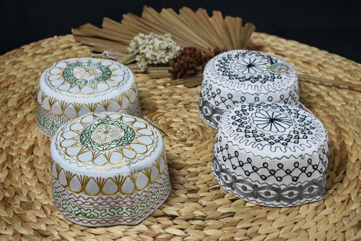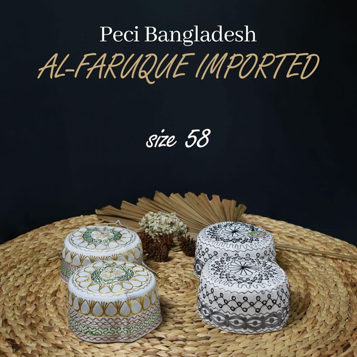 Kopiah peci Bangladesh putih bordir harga terjangkau kualitas bagus aneka warna dan motif ukuran 58