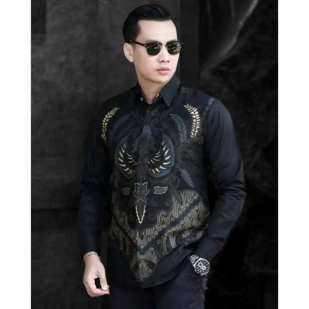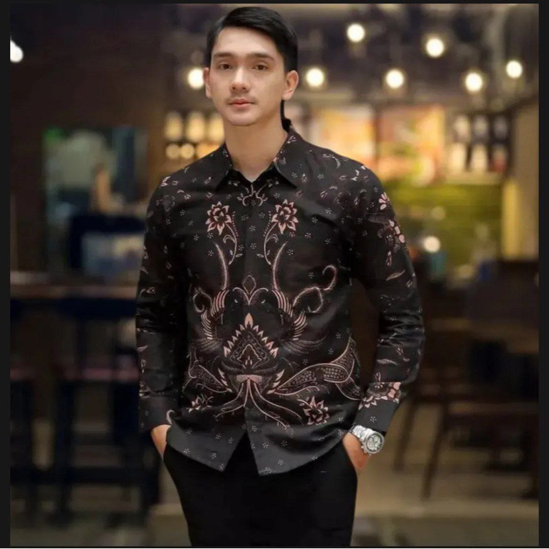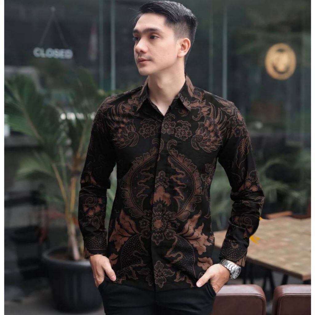 Kemeja Baju Batik Pria Lengan Panjang Pria Bordir Sogan HRB026 Modern Berkualitas Termurah Terlaris Official Store