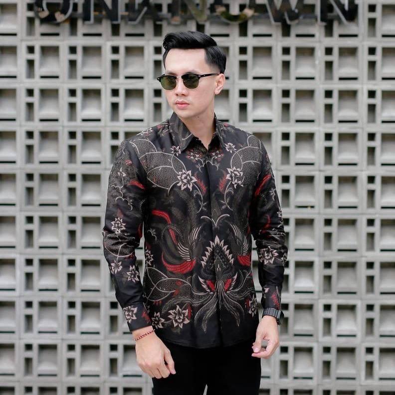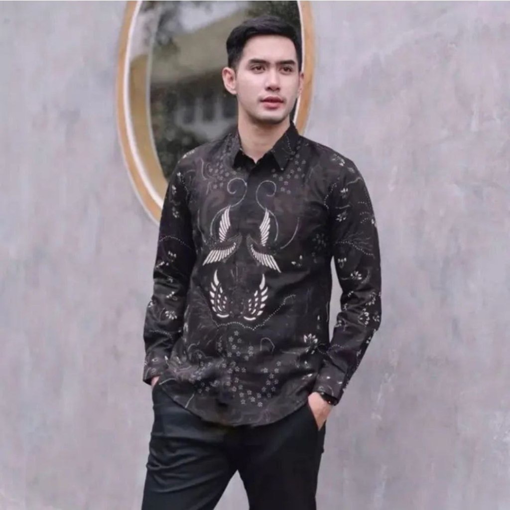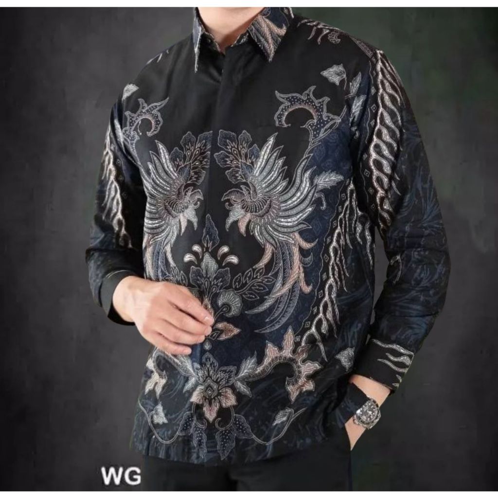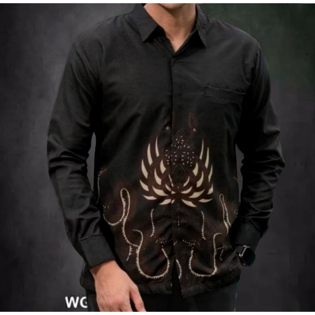Kemeja Baju Batik Pria Lengan Panjang Pria Bordir Sogan HRB026 Modern Berkualitas Termurah Terlaris Official Store