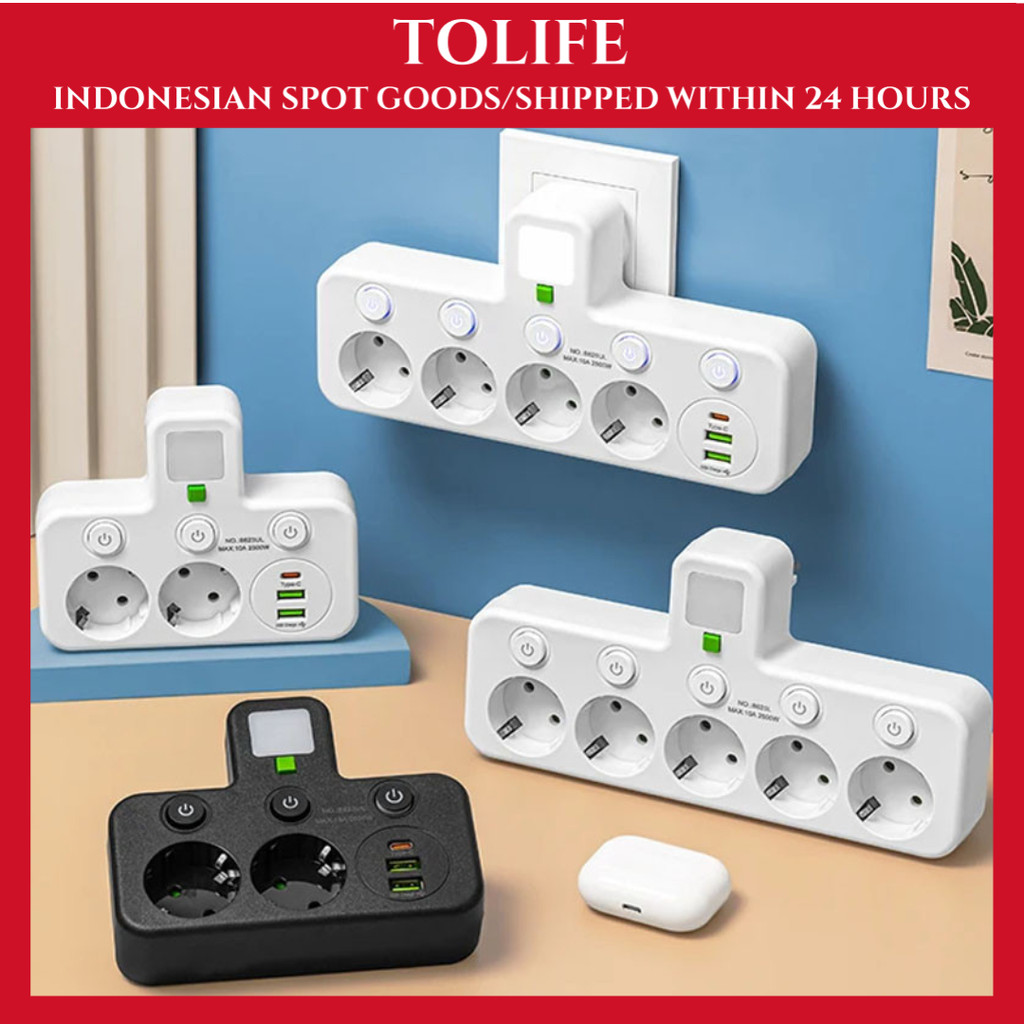 [] Stop Kontak Multi Colokan Listrik EU Plug Power Strip 5 Lubang + USB Type C