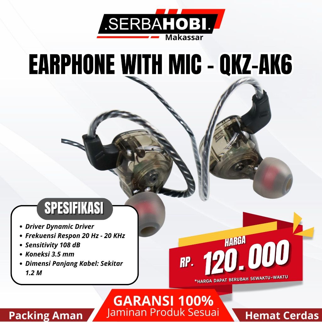 Earphone Monitor QKZ AK6 Bass Dynamic Driver With Mic