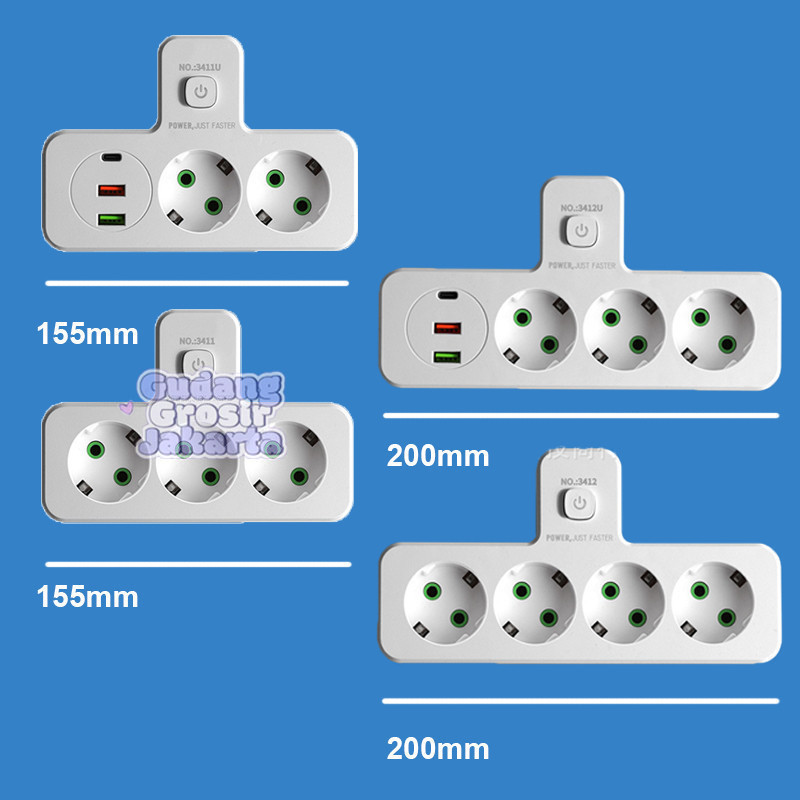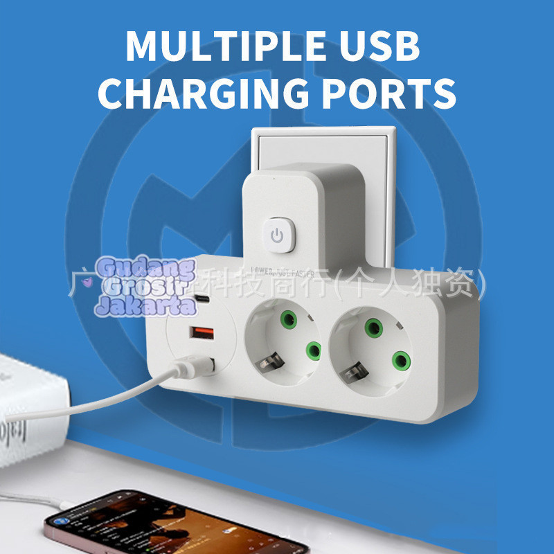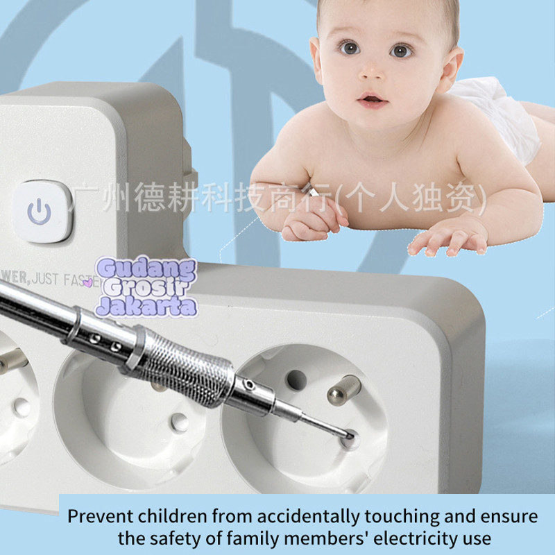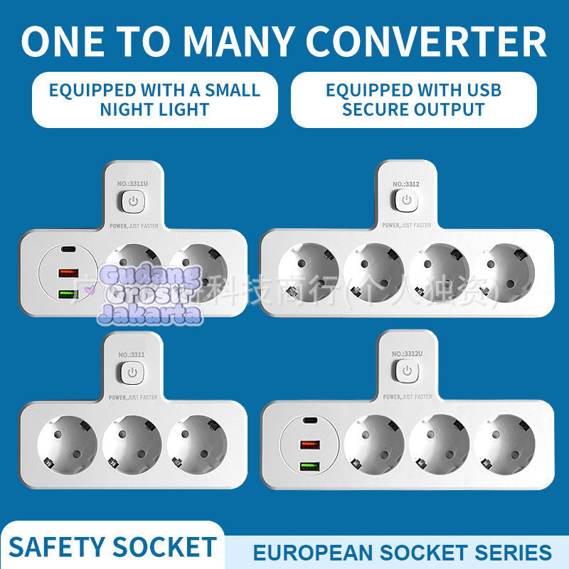 Stop Kontak EU 3 Lubang Multi Lubang dengan Saklar Filter Jaringan & Lampu Night Light Untuk Dinding