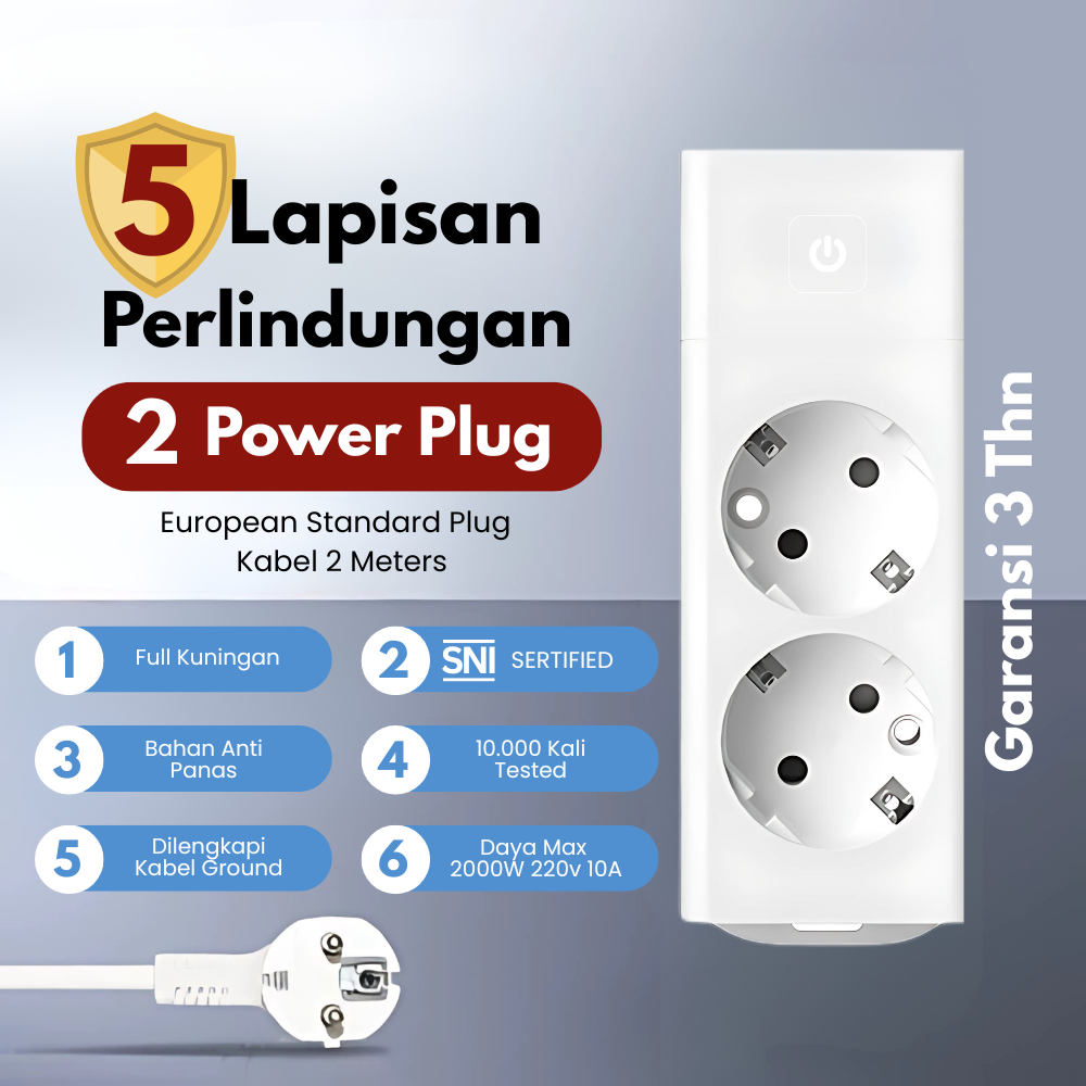 STOP KONTAK PLUG DENGAN TOMBOL POWER KABEL 2 METER 2/3/4/5 LUBANG PLUG BERSERTIFIKAT SNI