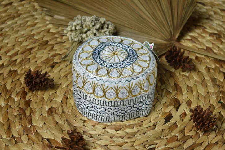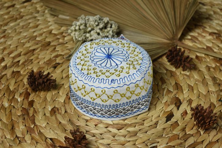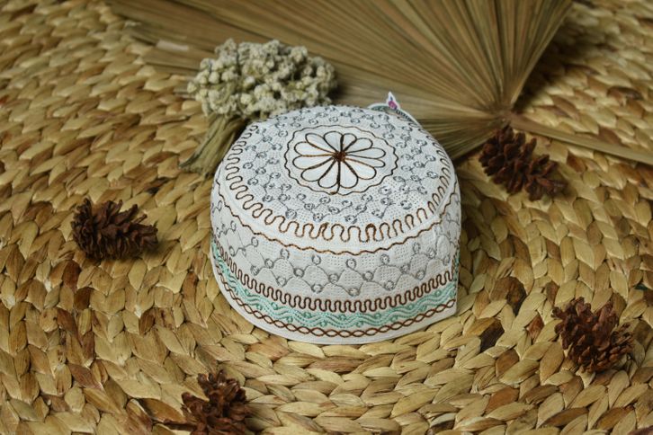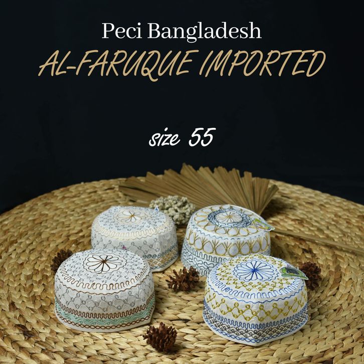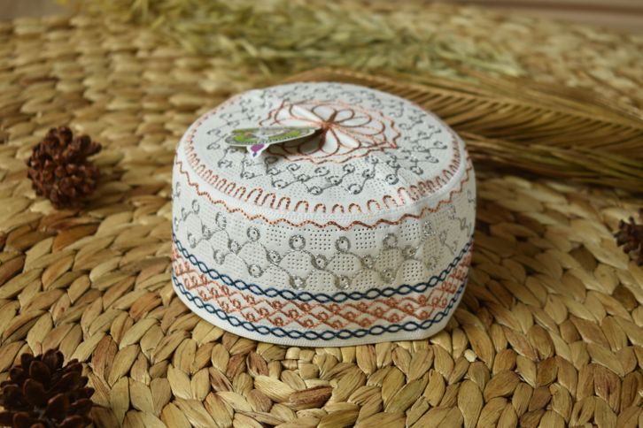 Kopiah peci Bangladesh Putih Bordir harga terjangkau kualitas impor aneka warna dan motif ukuran 55