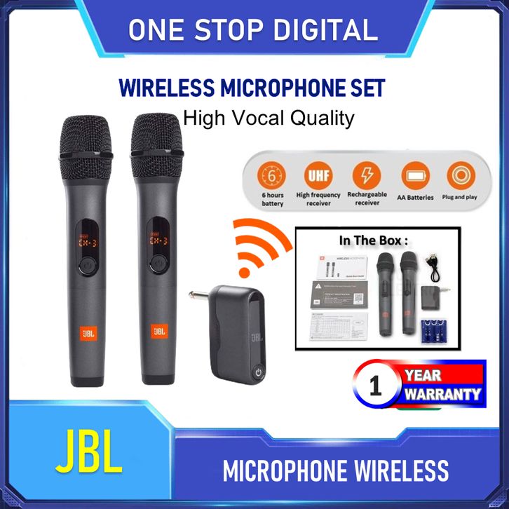 JBL Microphone Wireless Set 2 Mic Profesional Mic Karaoke With Receiver nirkabel