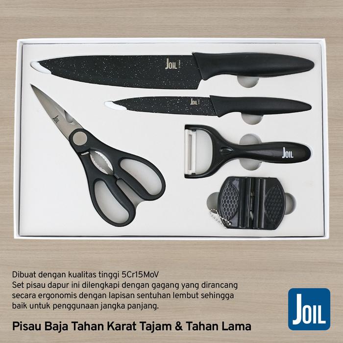 Joil Pisau Dapur Baja Utility Basic Knife Set 5 pcs Alat Pengupas Buah & Tempat Penyimpanan Stainless Steel