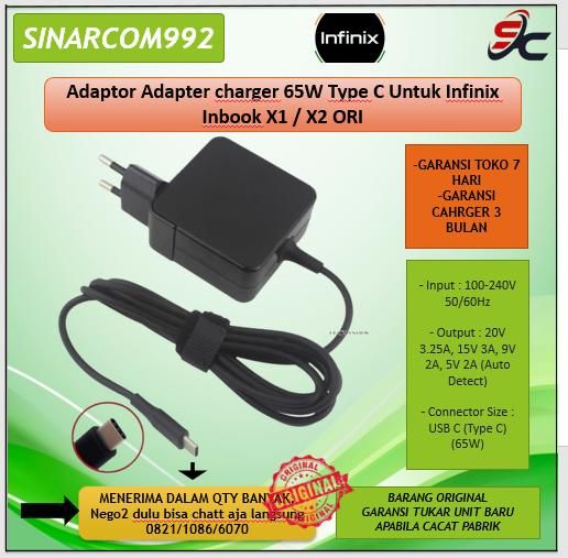 BEST SELLER Adaptor / charger / Casan 65W Type C Untuk Infinix Inbook X1 / X2 ORI - BARANG