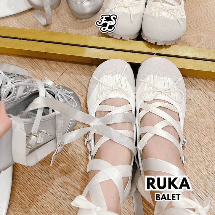 LUMMYSHOP Ruka Sepatu Sneakers Balet Wanita Sepatu Casual Sepatu Fashion Silver Beige
