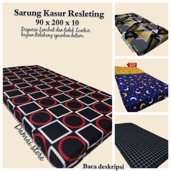 Sarung Kasur Resleting 90x200x10 Kain Disperse Tidak Luntur Belakang Hitam Spunbon