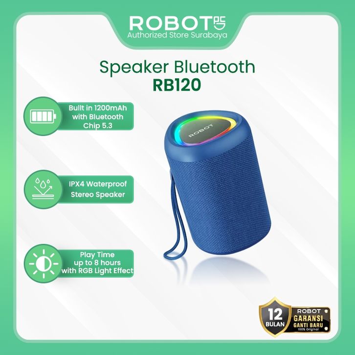 ROBOT Speaker Bluetooth Waterproof Mini Portable BT 5.3 Super Bass RGB Speaker Kecil RB120 Daya 1200mAH Garansi 1 Tahun