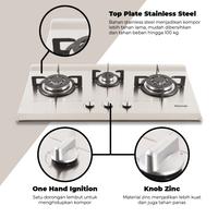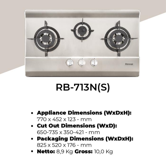 RINNAI RB713NS BUILT-IN GAS HOB KOMPOR GAS TANAM 3 TUNGKU STAINLESS RB-713N (S)