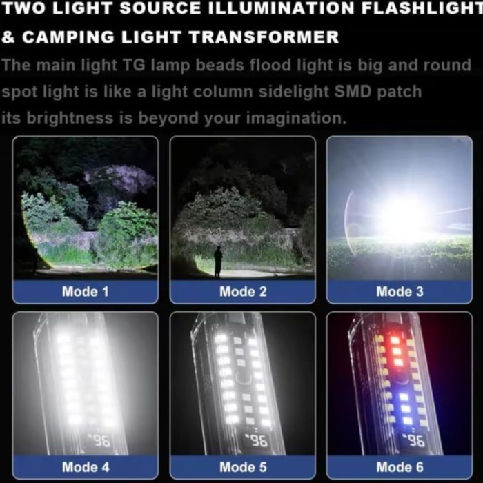 TANLOOK Lampu Senter Led Roll Zoom Alarm SOS strobo multifungsi powerbank