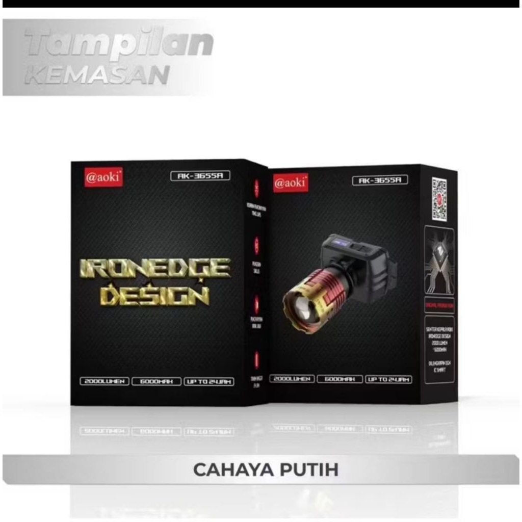 AOKI SENTER KEPALA 90W AK-3655A/K 6000MAH 2000LUMEN JARAK JAUH SENTER ZOOM - CAHAYA PUTIH