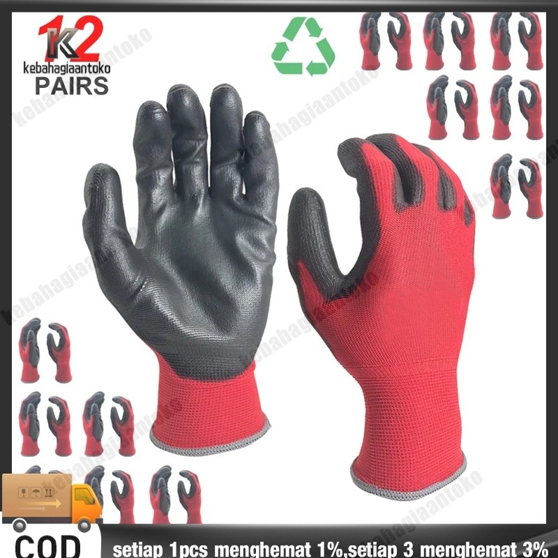 [12 Pasang]Sarung Tangan Karet Tangan Safety Latex Hitam Oil Resistant Nitrile Stretchable Rubber Gloves Sarung tangan k