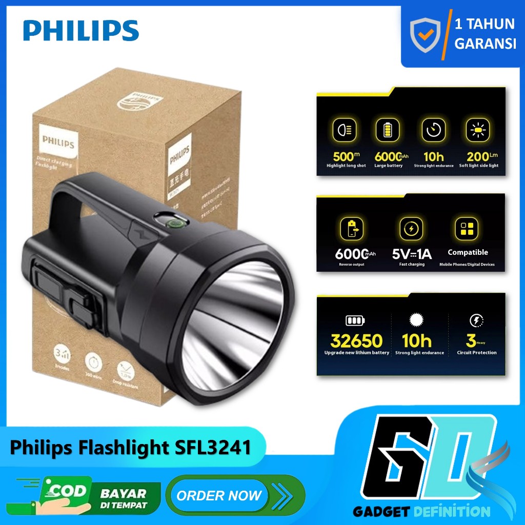 Philips Lampu Senter LED Multifungsi SFL3241 Senter Jumbo Dengan Dinamo dan Lampu Samping