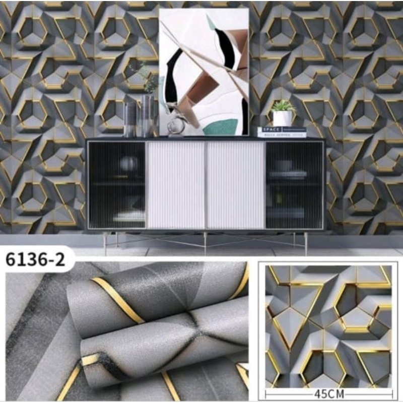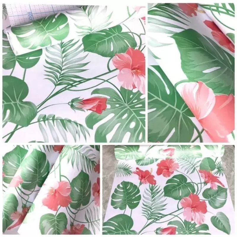 PAKET HEMAT 4 ROL Wallpaper Stiker Dinding Kamar Tidur Aesthetic Mewah Motif Bunga Polos Batu Batik Karakter ungu