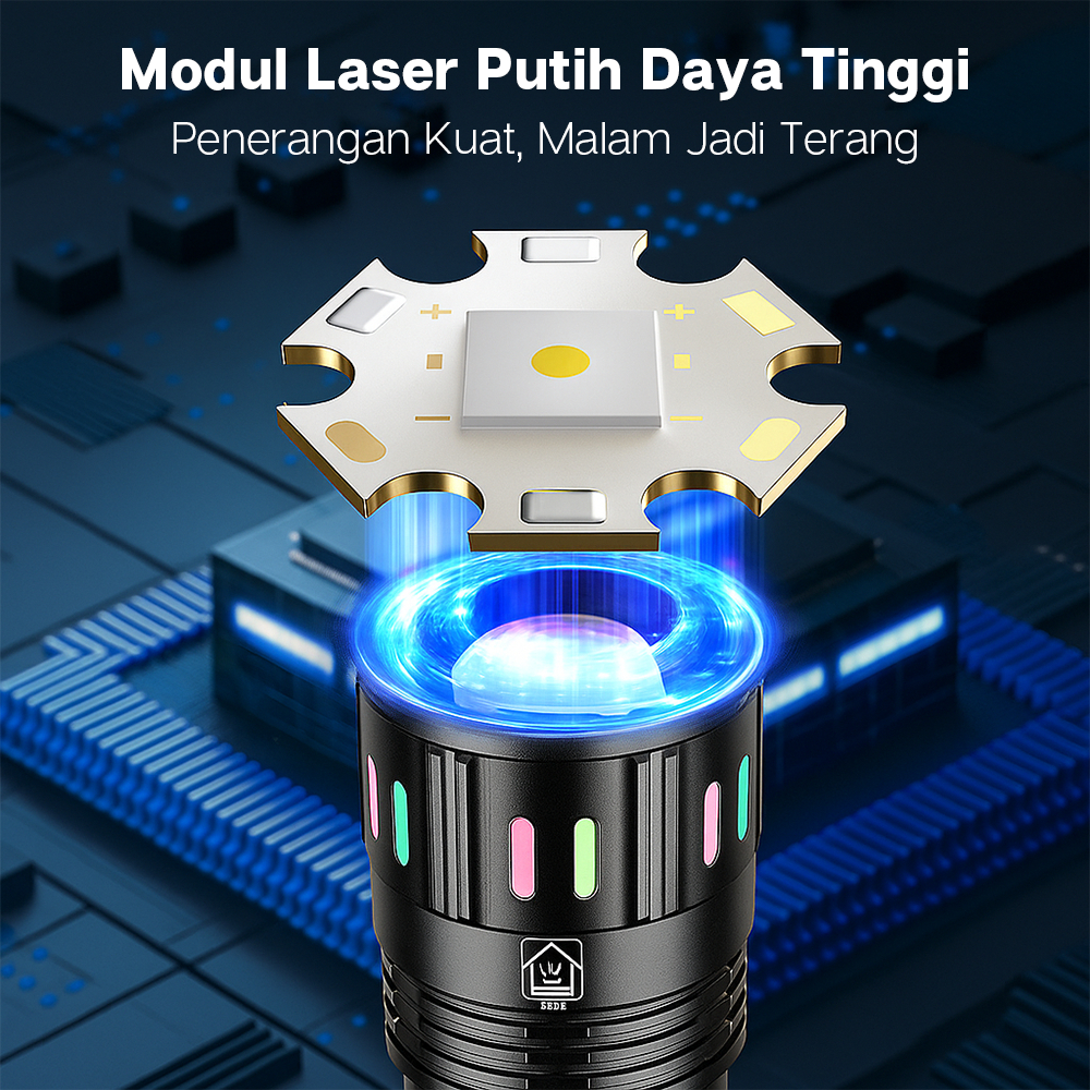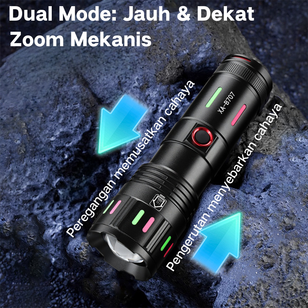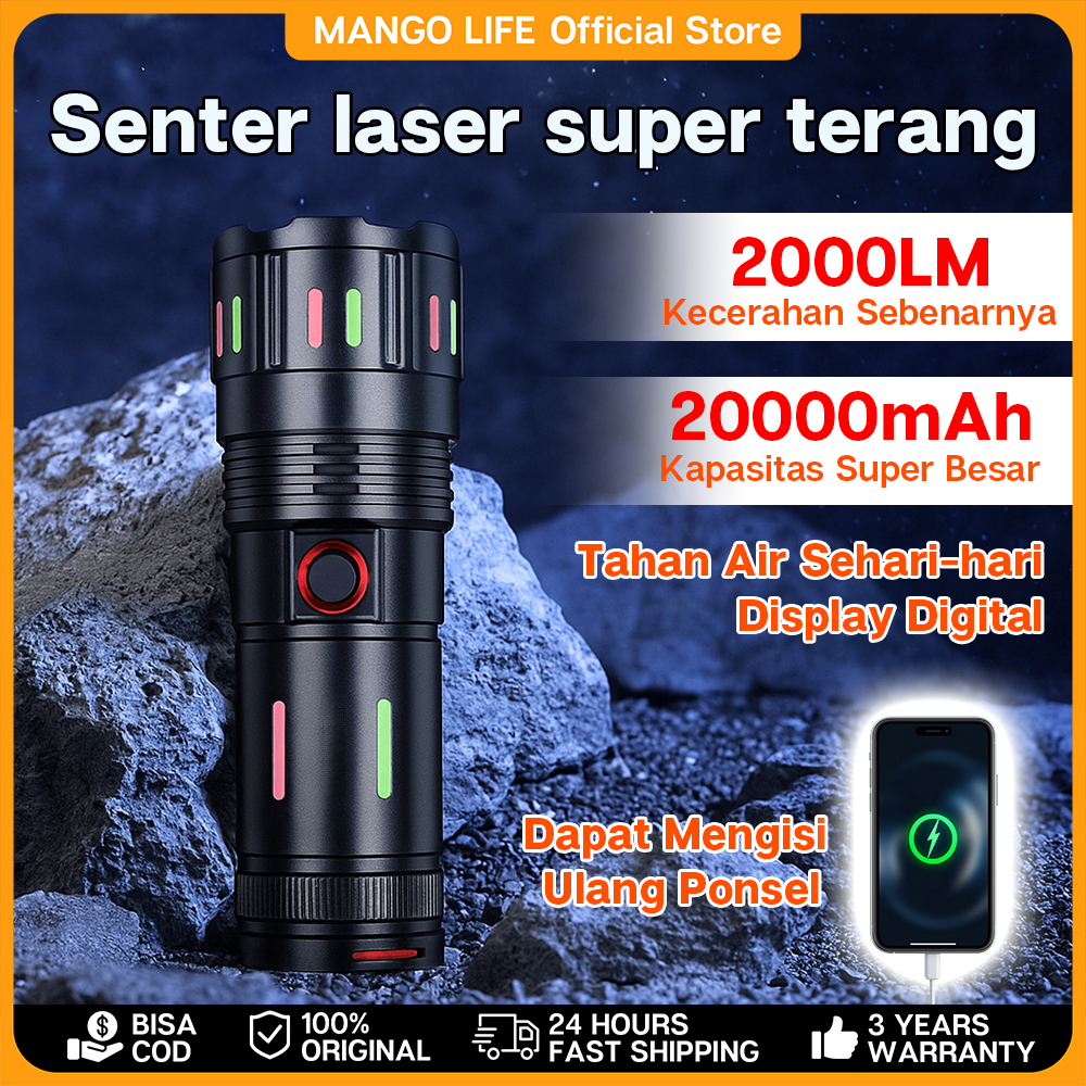Senter LED Zoom Teleskopik 2000LM Power Bank Portabel 20000mAh Laser Putih Super Terang 5 Mode Cahaya Tahan Air LCD Di