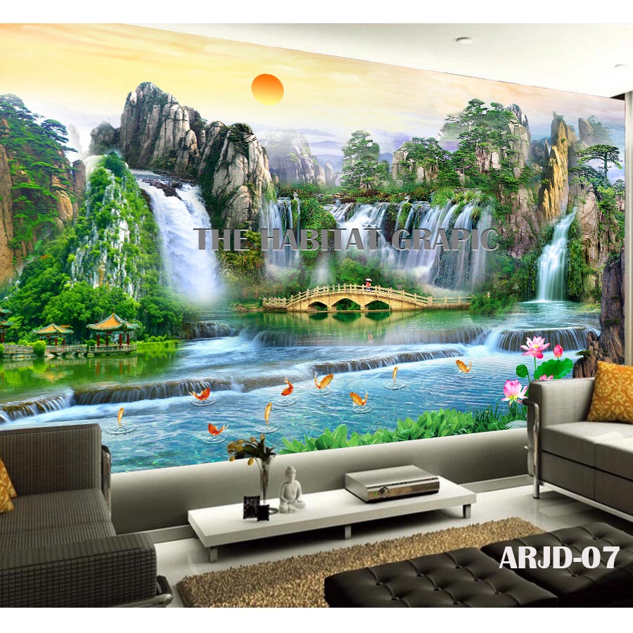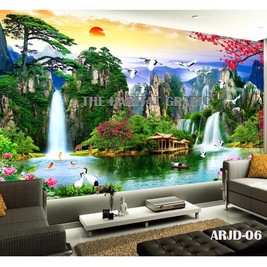 Wallpaper dinding pemandangan alam 3D - cetak wallpaper pemandangan alam - wallpaper dinding per meter- wallpaper dindin