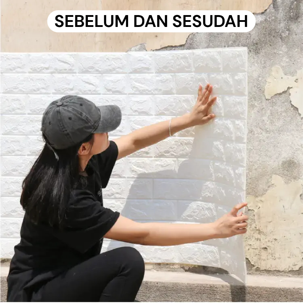(Paket 10 Lembar) Wallpaper Dinding Foam Timbul 3D Bata Classic Brick 70x77cm