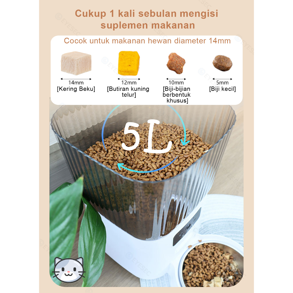 Smart Pet Feeder WiFi 5L Dispenser Makanan Otomatis Anjing/Kucing Mode Daya Ganda