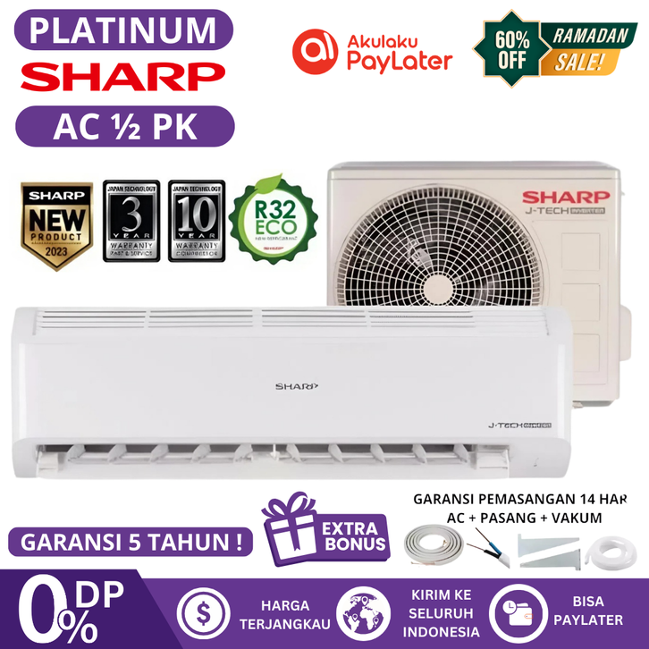 𝗙𝗥𝗘𝗘 𝗢𝗡𝗚𝗞𝗜𝗥 | AC 1 2 SETENGAH PK LOW WATT SHARP AQUA MIDEA MURAH BERGARANSI RESMI UNIT + MATERIAL