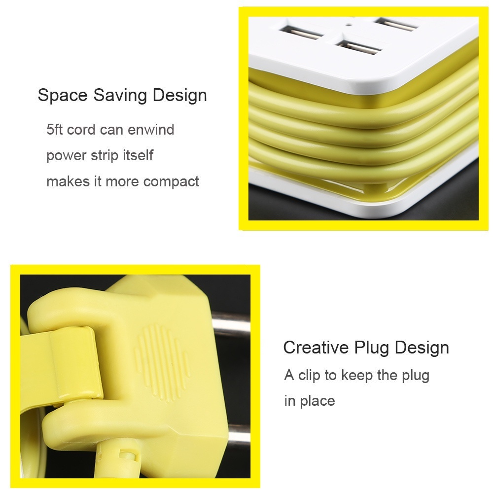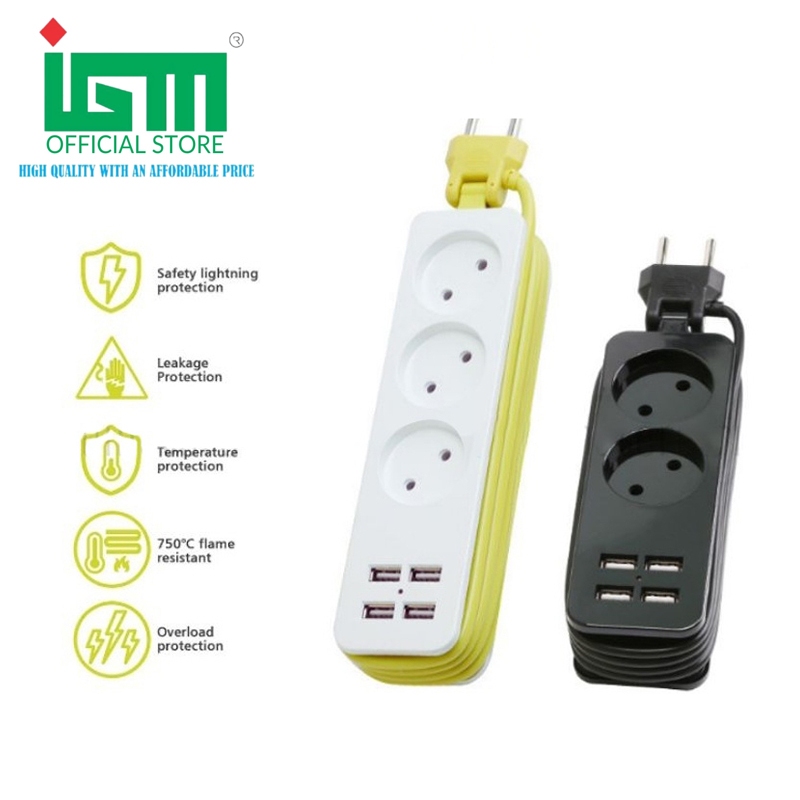 IGM-Portable Stop Kontak Traveling Travel - 2/3 Colokan Lubang Socket EU AC + 4 USB Port Kepala soket steker bercabang d