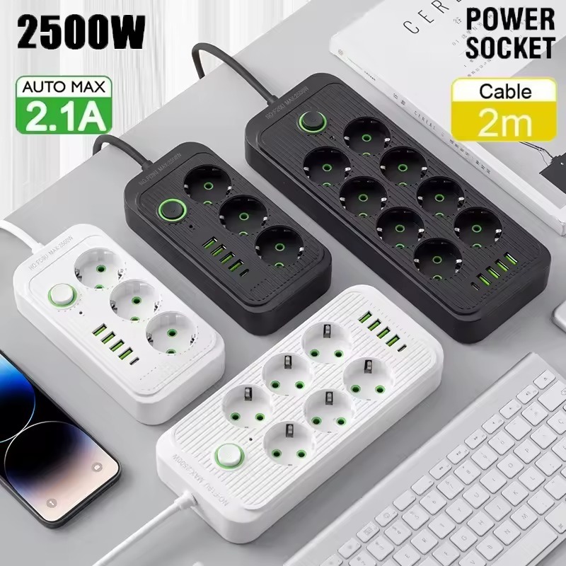 3 & 6 Lubang Stop Kontak Colokan Kabel Listrik Stopkontak Kabel Sambungan Kabel Extension USB Port