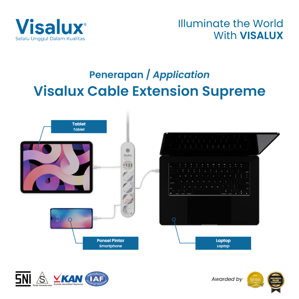 Visalux Kabel Extension with Power Button Supreme (2 Pin) - 4L + Type C + USB A Fast Charging (Stop Kontak Kabel 4 Luban