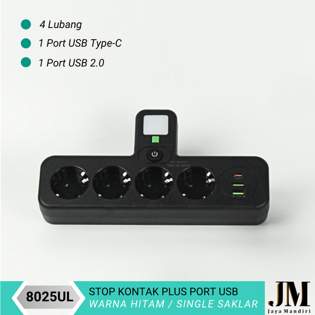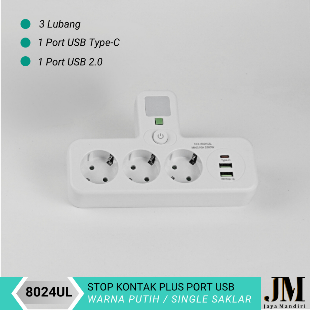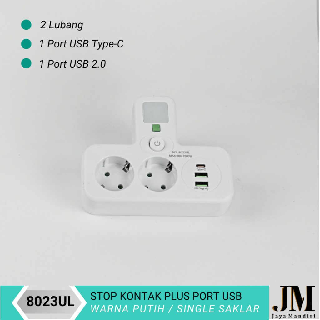 Stop Kontak Colokan Listrik Ada Port USB Type C 2/3/4 Lubang dan 1 Saklar 8023 UL - 2932