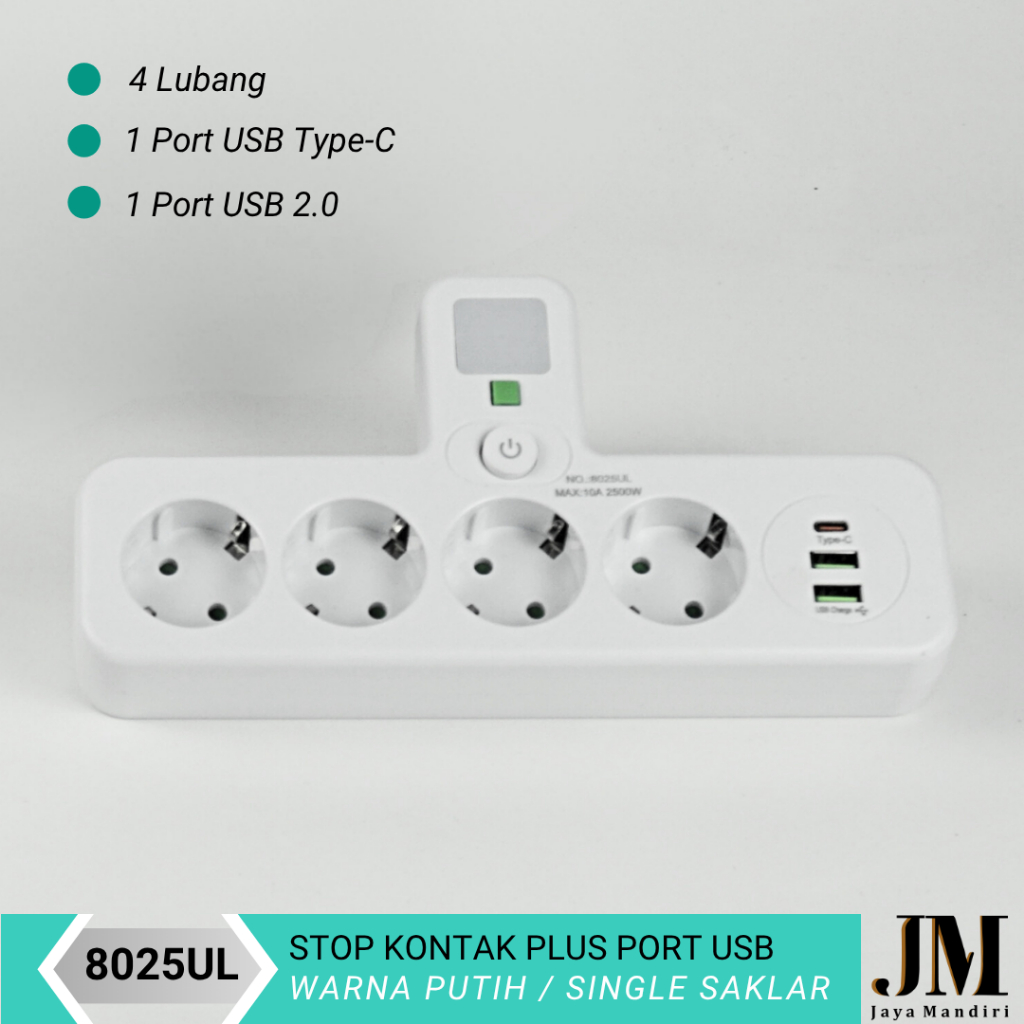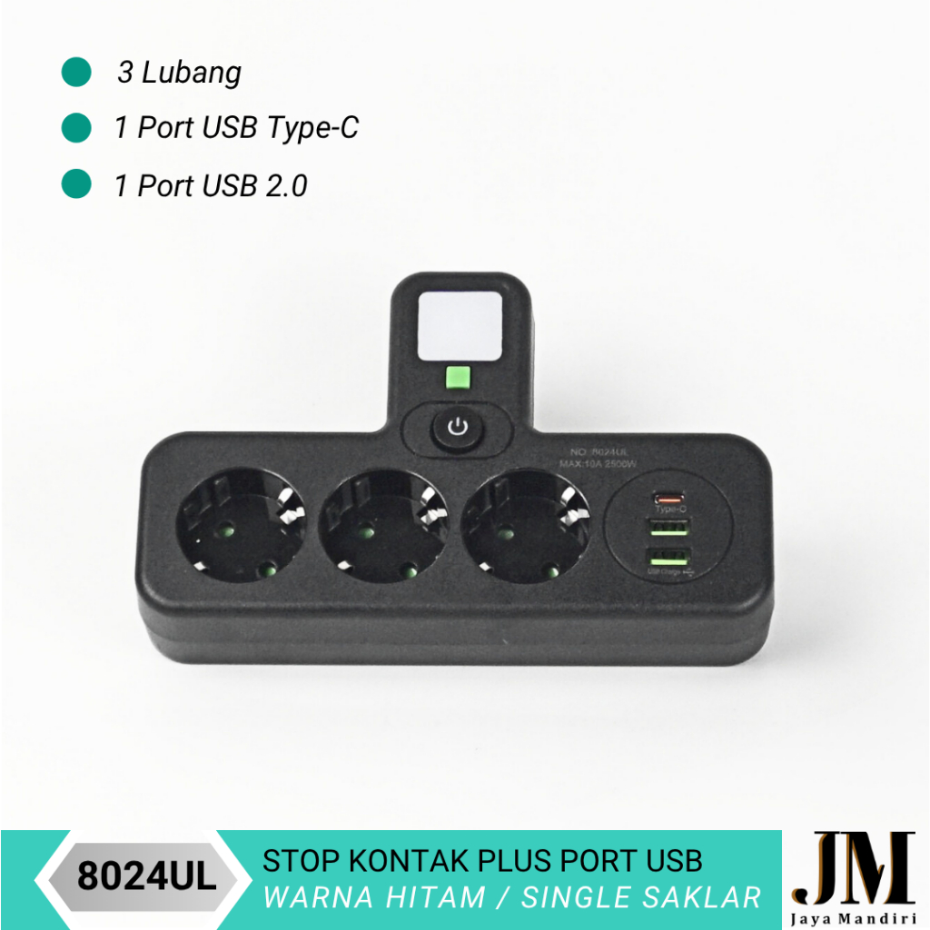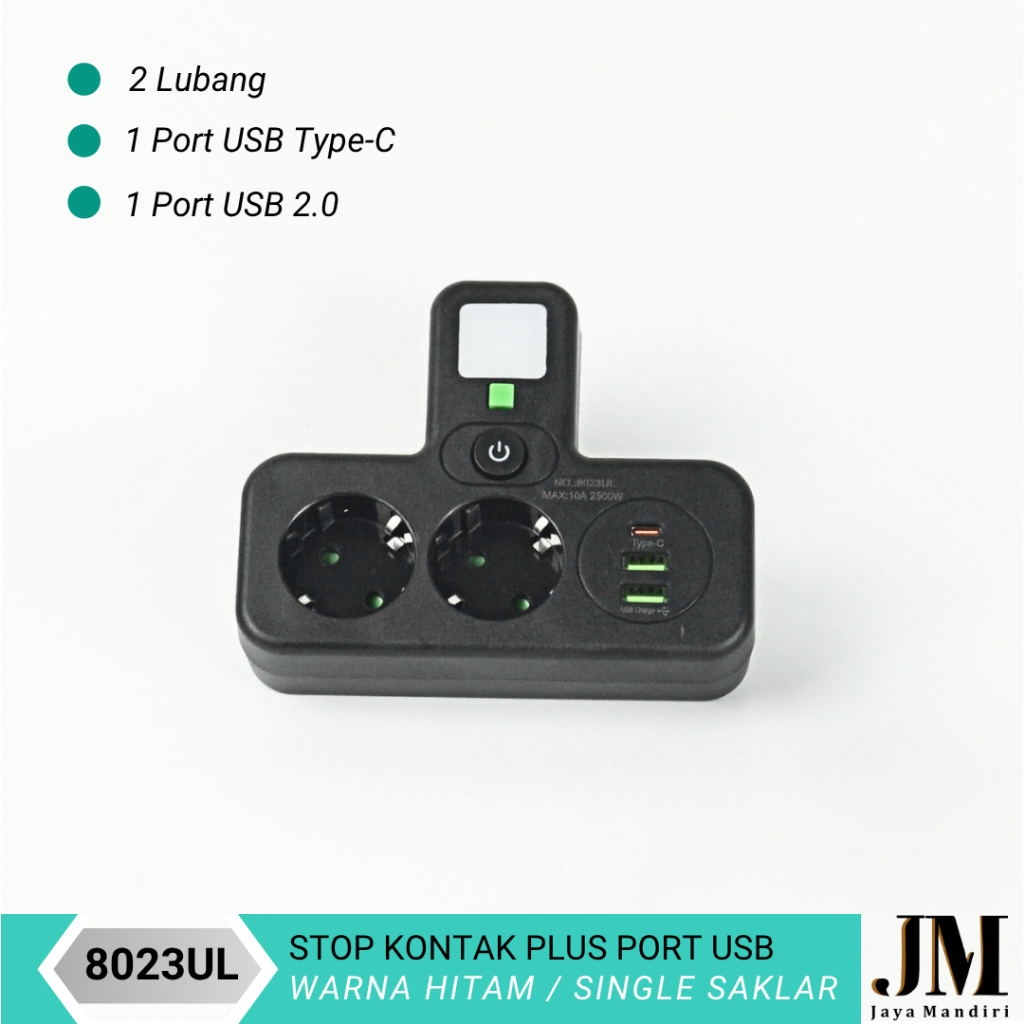 Stop Kontak Colokan Listrik Ada Port USB Type C 2/3/4 Lubang dan 1 Saklar 8023 UL - 2932