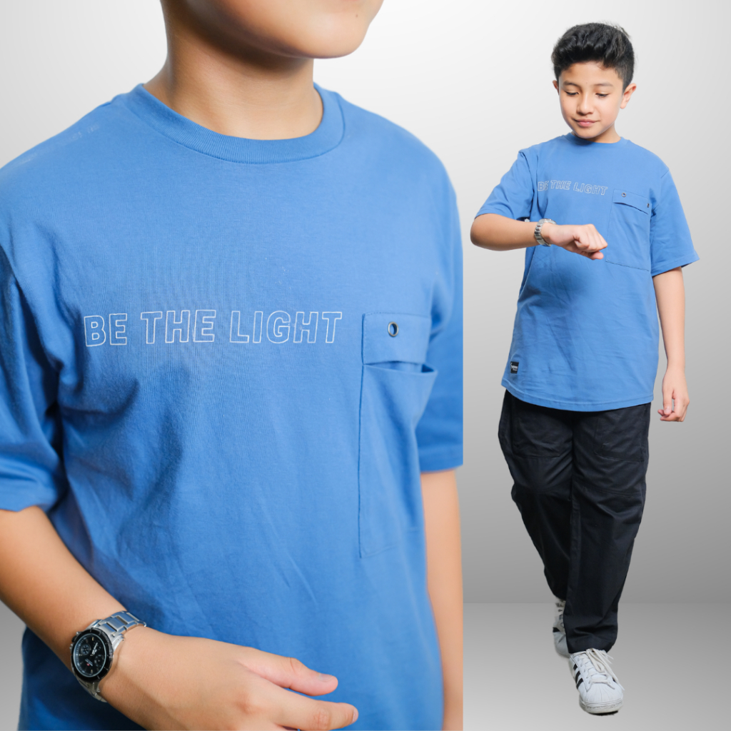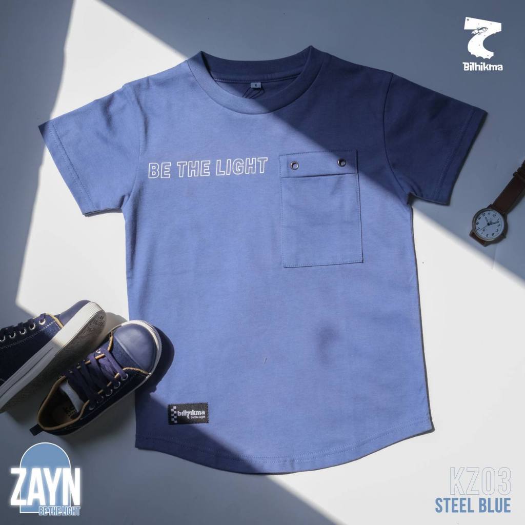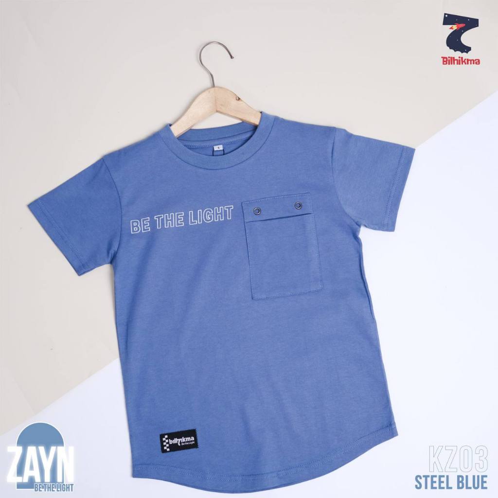 [Mall] BILHIKMA - KAOS POLOS BASIC ANAK WARNA BIRU MUDA VARIASI SAKU ZAYN