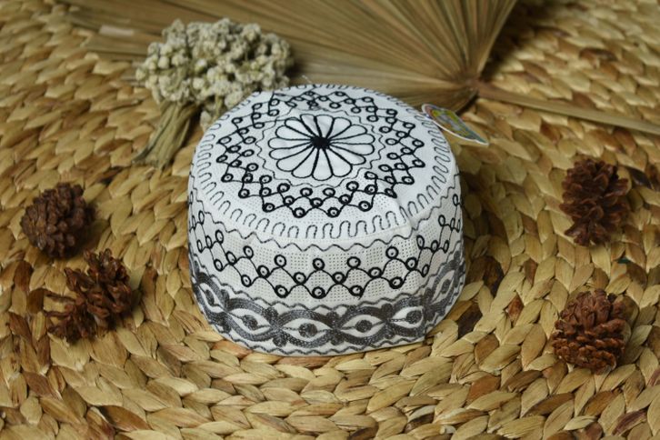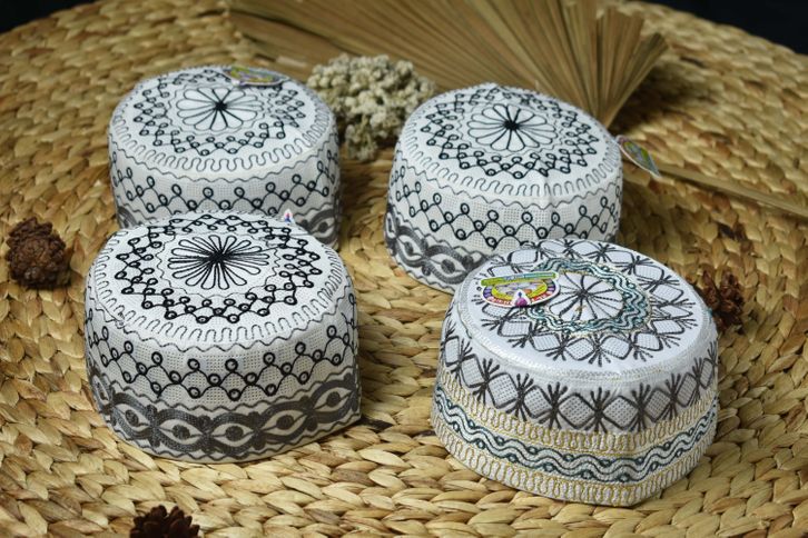 Kopiah peci Bangladesh putih bordir harga terjangkau kualitas impor ukuran standar dewasa ukuran 56