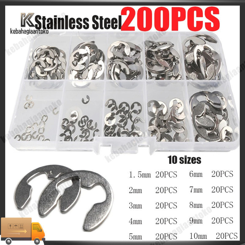 200pcs Kit Bermacam-macam 1.5-10mm Poros Baja Tahan Karat Cincin Penahan Eksternal Klip E Klip Jepret Mesin Cuci untuk P